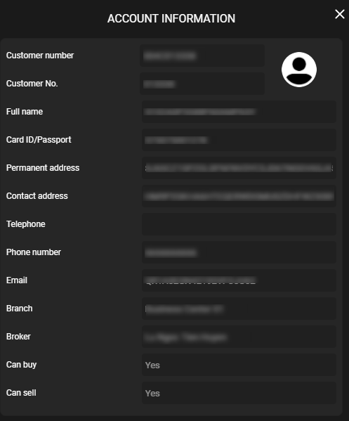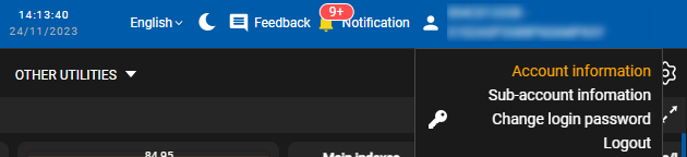 - To view the account information, the user points over the account name, click on the item “Account information