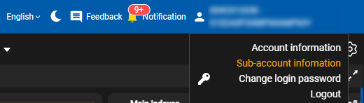 - To view the sub-account information, the user points over the account name, click on the item “Sub-account information”