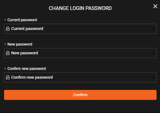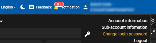 - To change the login password, the user points over the account name and selects the item “Change login password”