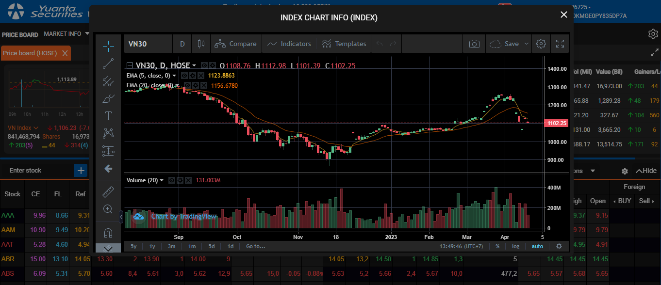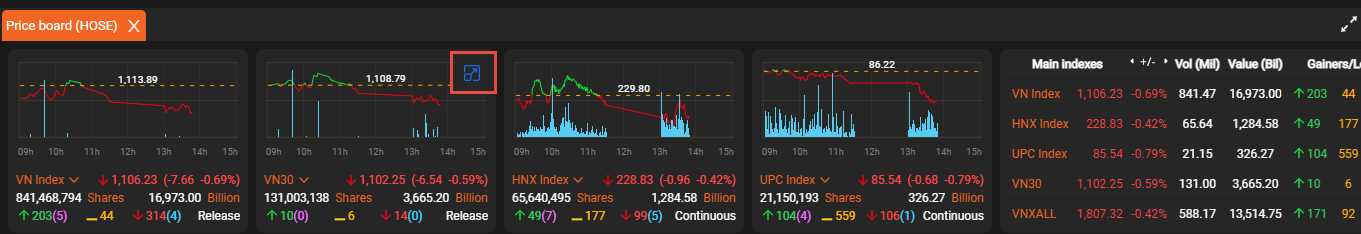 - The “Technical Charts” screen will be opened and displayed for you, and you can choose to view charts of other indices or individual stock code symbols by entering in the search box
