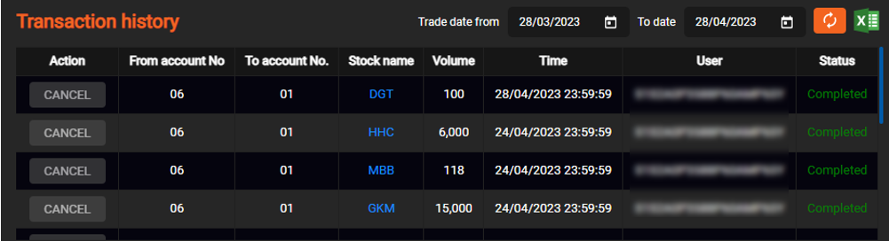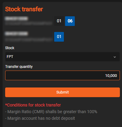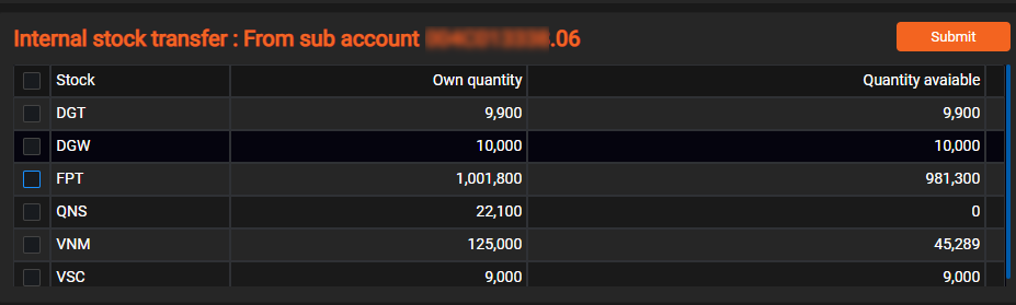 - At the same time, at the list of securities you own, you can also transfer multiple securities at the same time quickly by checking the securities to transfer and clicking the “Submit” button