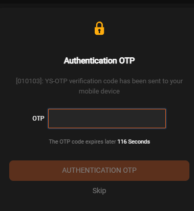 - The system will display a message asking to enter OTP, you enter OTP to continue making the request, click “Skip” to close the notification and stop the operation