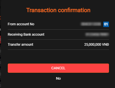 - Tap “Cancel” to confirm the cancellation of the request, select “No” to close the notification and stop the operation. After clicking “Cancel”, the system will cancel the request and update the transaction history list and display it for you.