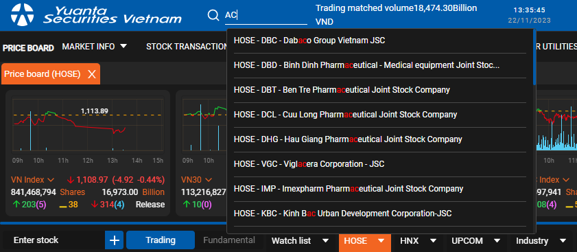 - Or you can search for a stock code that needs quick viewing details by entering the stock code in the “View stock detail” box at the top