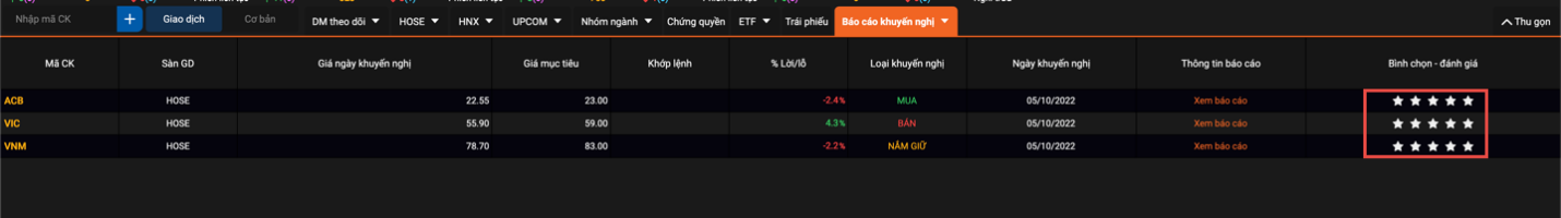 - Quý khách có thể gửi đánh giá khuyến nghị thông qua bình chọn số sao cho khuyến nghị