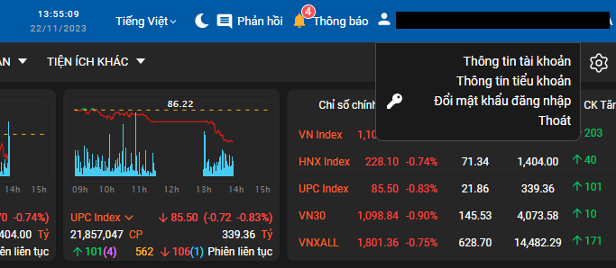 - Để xem thông tin tài khoản, người dùng rê chuột vào tên tài khoản, nhấn chọn mục “Thông tin tài khoản”