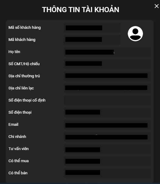 - Hệ thống sẽ mở lên màn hình hiển thị thông tin chi tiết của tài khoản