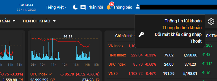- Để xem thông tin tiểu khoản, người dùng rê chuột vào tên tài khoản, nhấn chọn mục “Thông tin tiểu khoản”.
