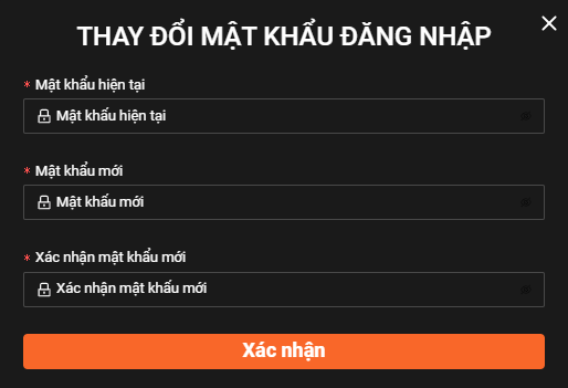- Hệ thống sẽ mở lên màn hình “Thay đổi mật khẩu đăng nhập” giúp người dùng có thể thay đổi mật khẩu đăng nhập của tài khoản. Tại đây người dùng nhập đầy đủ các thông tin và nhấn vào nút “Xác nhận” để đổi mật khẩu.