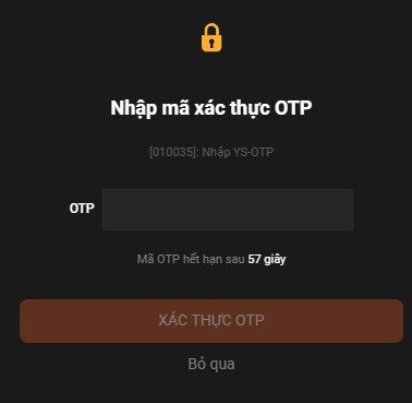 - Sau khi nhấn “Đồng ý” hệ thống sẽ mở một thông báo mới lên và yêu cầu bạn phải nhập mã OTP để xác nhận đặt mua/bán (Trường hợp quý khách chưa nhập OTP tại màn hình đăng nhập). Lưu ý: OTP đặt lệnh sẽ được ghi nhận trong phiên đăng nhập.