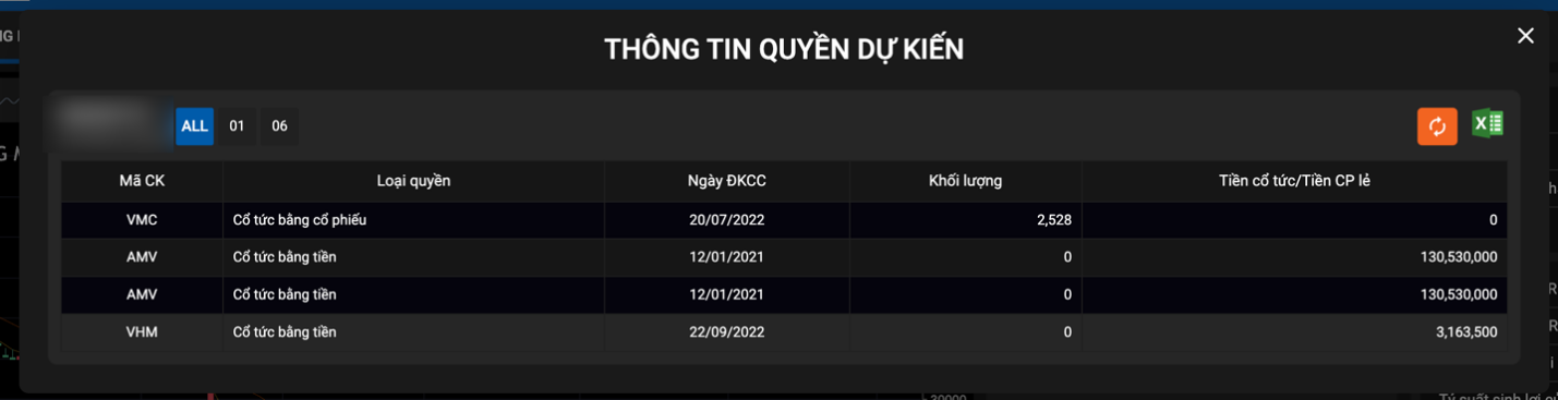 - Để truy cập màn hình “Thông tin quyền dự kiến”, quý khách rê chuột vào mục “Giao dịch chứng khoán”, sau đó chọn “Thông tin quyền dự kiến”