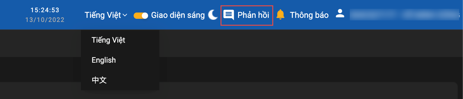 - Để gửi phản hồi/ ý kiến về hệ thống, quý khách vui lòng ấn chọn mục “Phản hồi”