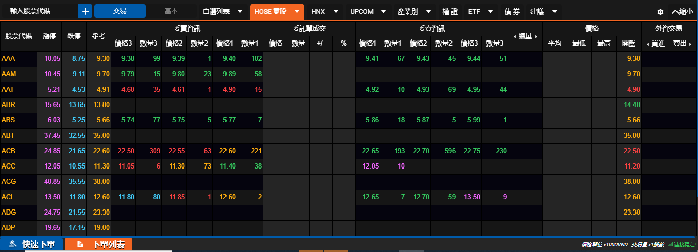 若要查看交易所的零股行情報價,請將滑鼠停留在每個交易所的選單上,然後前往該[交易所]零股區。
