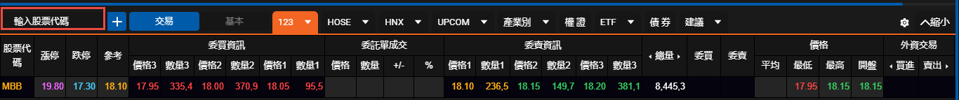- 「輸入股票代碼」繼續將股票添加到關注列表中,然後輸入任何股票代碼並按下「Enter」鍵新增至目前自選股列表中。