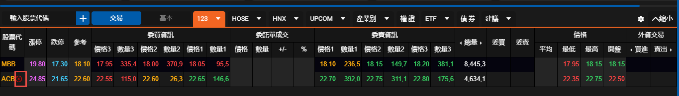 - 若要刪除自選股中的股票代碼,您只需將滑鼠停在要刪除的股票代碼的名稱上,並點擊刪除圖示即可。