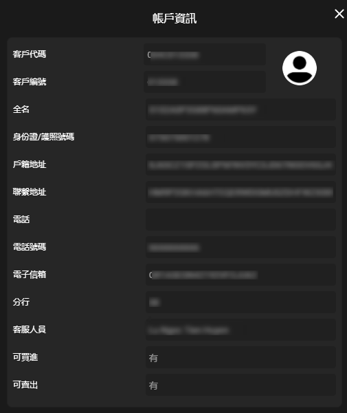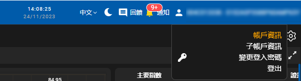 - 若想進入「帳戶資訊」畫面,請將滑鼠停在帳戶資訊名稱上,然後點擊「帳戶資訊」。