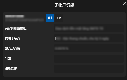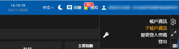 - 若想進入「子帳戶資訊」畫面,請將滑鼠停在帳戶資訊名稱上,然後點擊「子帳戶資訊」。