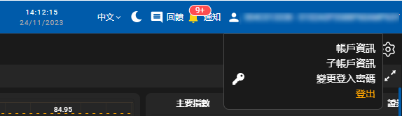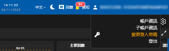 - 若想「變更登入密碼」畫面,請將滑鼠停在帳戶資訊名稱上,然後點擊「變更登入密碼」。