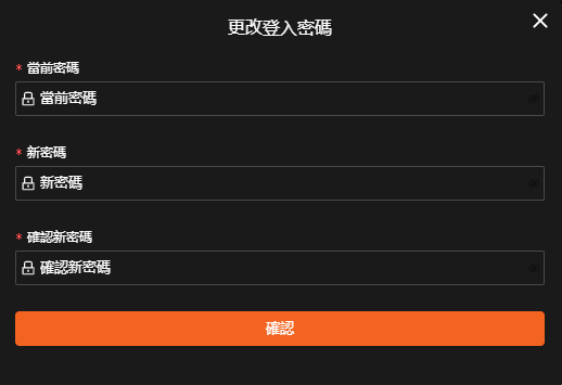 - 系統將打開「變更登入密碼」畫面,以便使用者變更登入密碼。在此處,請您輸入所有相關資訊,然後點擊「確認」按鈕。