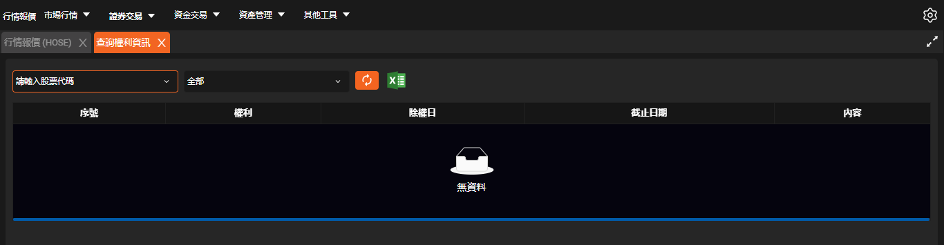 在此處,請您接著在「請輸入股票代碼」 框中輸入要搜尋的股票代碼,然後選擇想搜尋的權利類型。