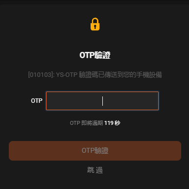 - 系統將顯示要求輸入OTP密碼的通知,點擊「跳過」關閉通知並停止操作。