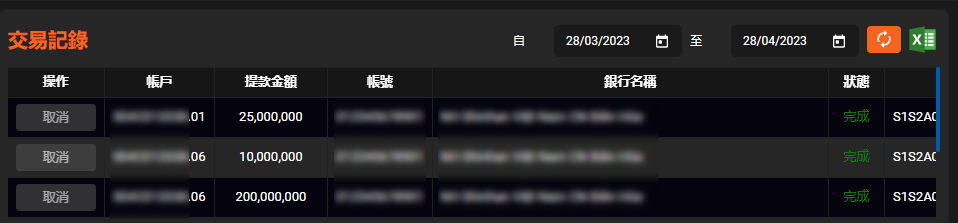 - 同時,在記錄列表中,如果提款要求處於「待核准」的狀態,您可以取消這要求。