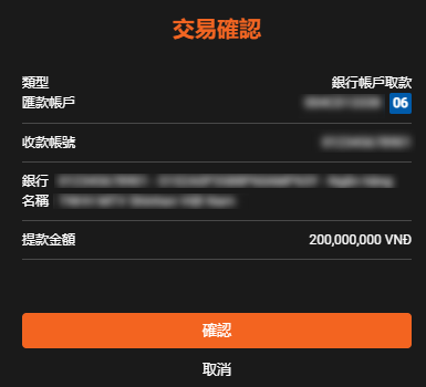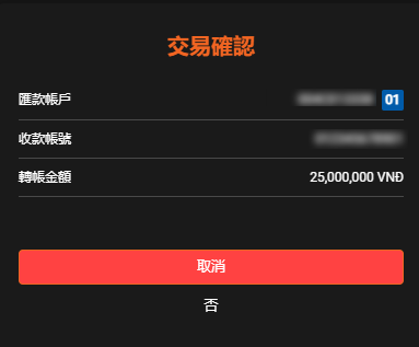 - 輸入OTP密碼後,系統會顯示交易確認資訊,您可「確認」或「取消」要求。