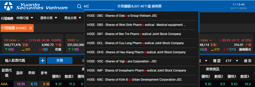 - 若要開啟股票代碼的詳細資訊的畫面,請點擊行情報價或畫面上任何可以點擊的股票代碼名稱。