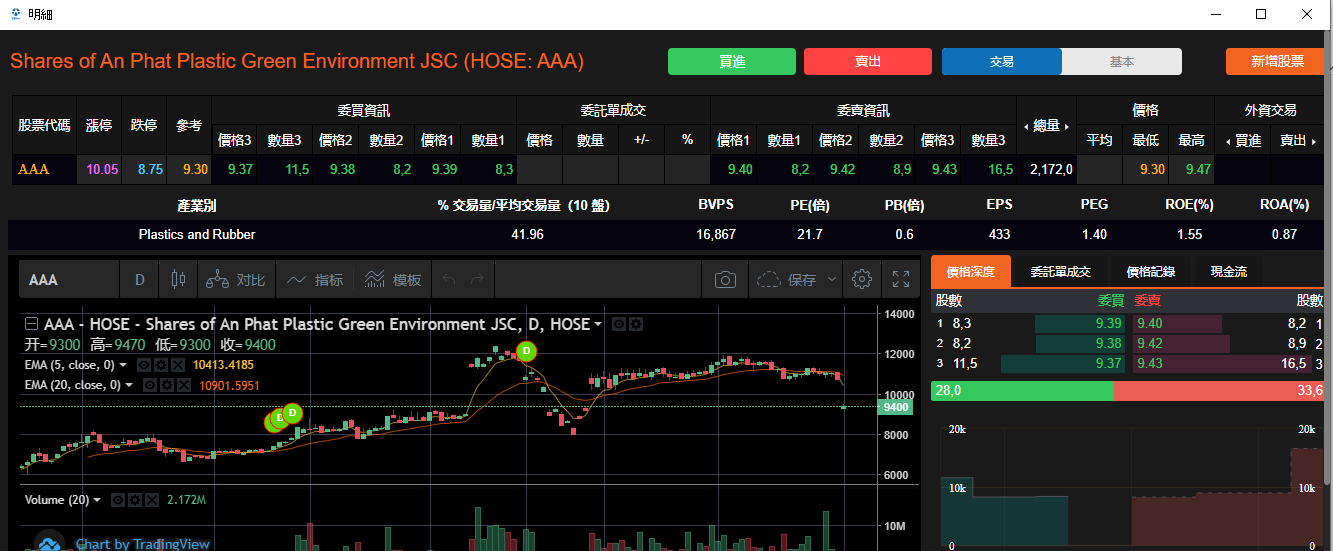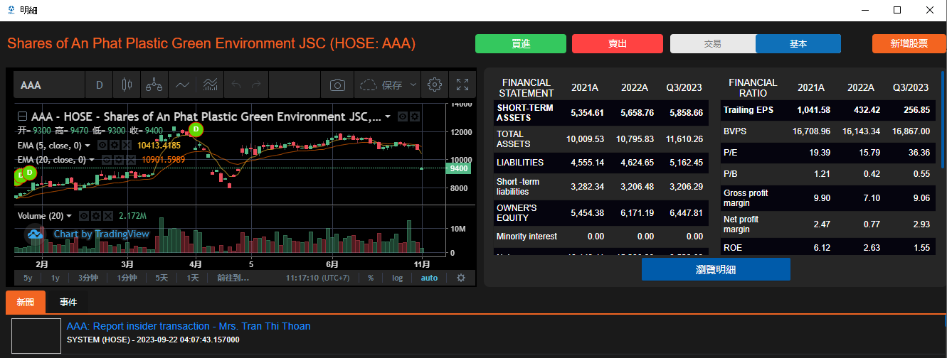 - 若想查看該檔股票基本面資訊,請點擊旁邊的「基本」按鈕,視窗將自動顯示給使用者關於基本面的資訊。
