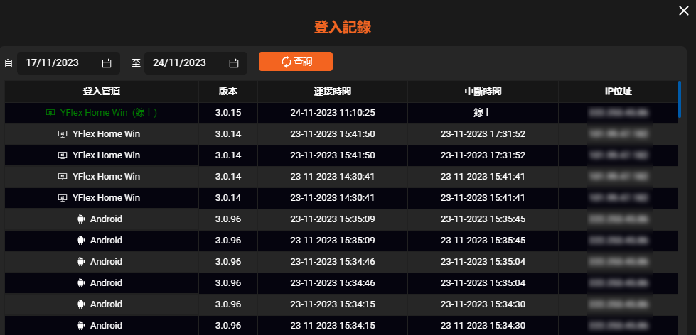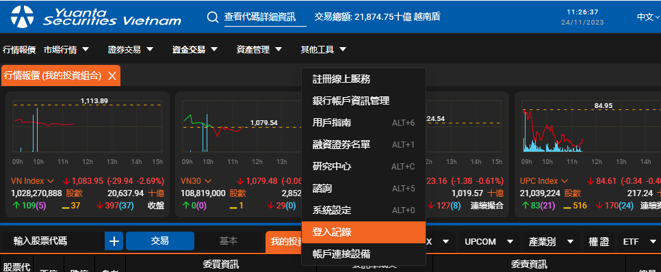 若想進入「登入記錄」畫面,請將滑鼠停在主選單上的「其他工具」,然後點擊「登入記錄」。